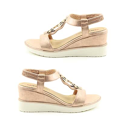 Heavenly Feet Milena Rose Gold Wedge Sandals with Elastic Ankle Strap