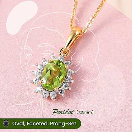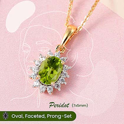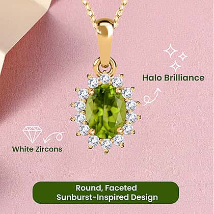 Hebei Peridot August Birthstone and Natural Zircon Halo Pendant with Chain(Size-20 with Lobster Clasp) in 18K Vermeil Yellow Gold Plated Sterling Silver
