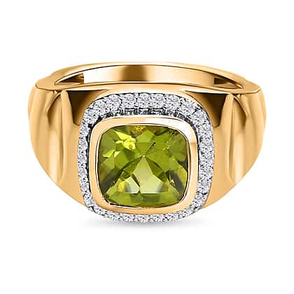 Hebei Peridot and Natural Zircon Halo Mens Ring in 18K Yellow Gold Vermeil Plated Sterling Silver 2.40 Ct