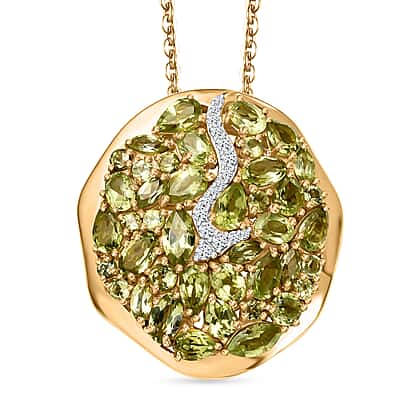 Hebei Peridot and Natural Zircon Pendant with Chain (Size 20) in 18K Vermeil Yellow Gold Plated Sterling Silver 5.95 Ct, Silver Wt. 6.50 Gms