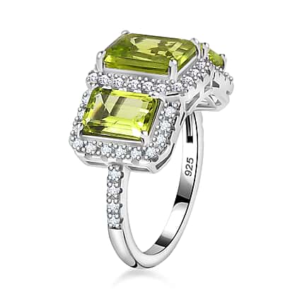 Hebei Peridot & Natural Zircon Stone Ring in Platinum Overlay Sterling Silver 4.35 Ct.