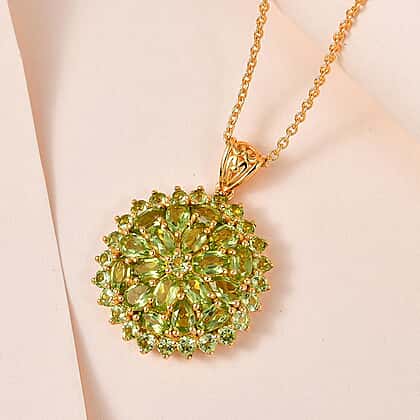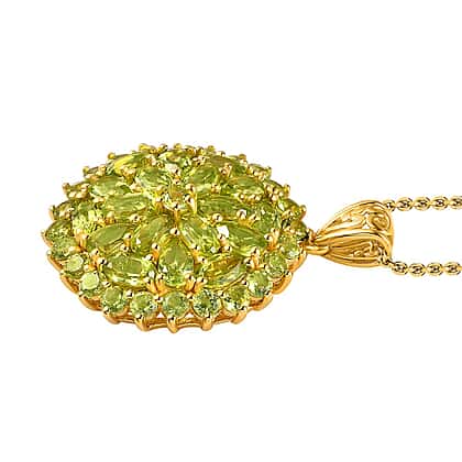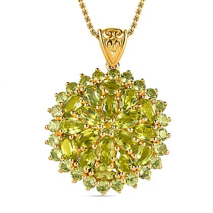 Hebei Peridot Pendant with Chain (Size 20) in 18K Yellow Gold Vermeil Plated Sterling Silver 6.31, Silver Wt. 6.73 Gms