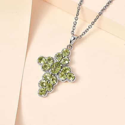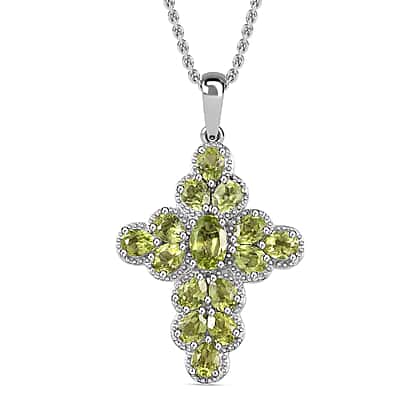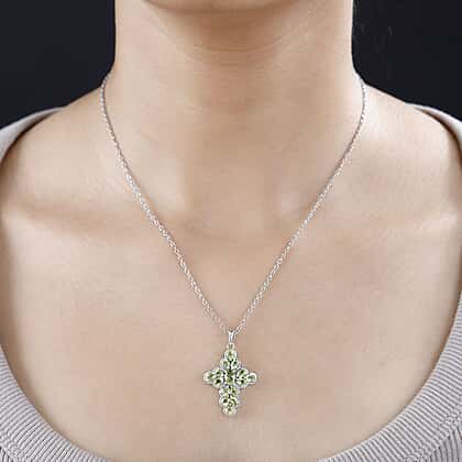 Hebei Peridot Cross Pendant with Chain (Size 20) in Platinum Overlay Sterling Silver 2.44 Ct