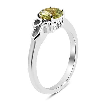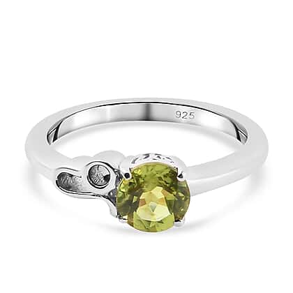 Peridot August Birthstone Zodiac Leo Sign Ring in Platinum Plated Silver