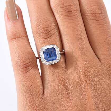 HEIR TO KASHMIR SAPPHIRE - Nilamani & White Diamond Ring in Rhodium Overlay Sterling Silver 3.07 Ct.