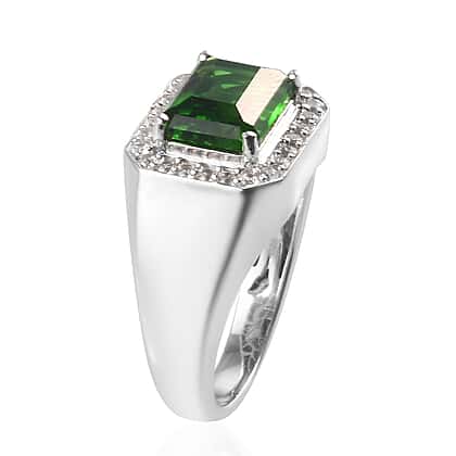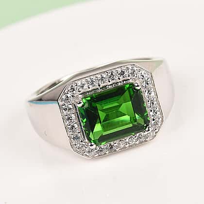 Helenite and Natural Cambodian Zircon Ring in Platinum Overlay Sterling Silver 3.75 Ct, Silver wt 6.25 Gms