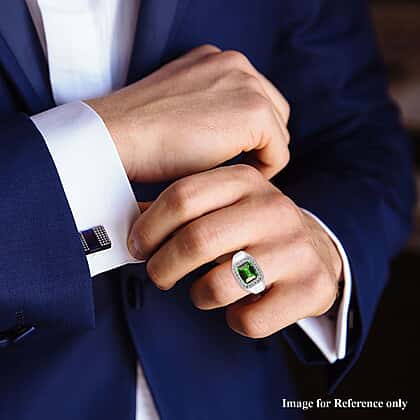 - Gorgeous green hued gemstone is incredibly surrounded by round cut Zircons giving a shiny appeal to the ring