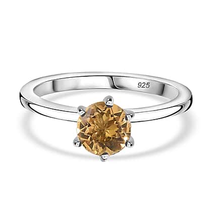 - Solitaire ring flaunts a heliodor round that is famed for its golden yellow hues