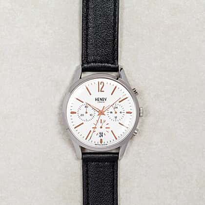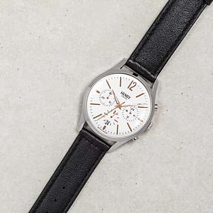 HENRY LONDON Highgate Mens Water Resistant Watch with Genuine Leather Strap - Black
