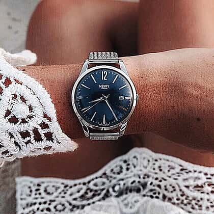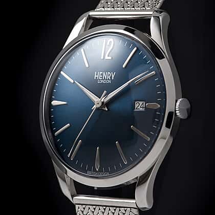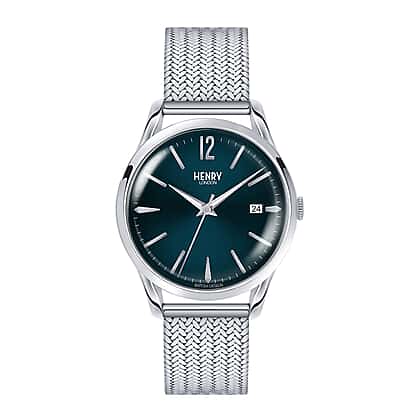 HENRY LONDON Knightsbridge Ladies Blue Dial Mesh Bracelet Watch in Silver Tone