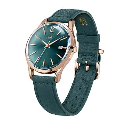 Henry London Stratford Ladies Green Dial 3 ATM Water Resistant Watch with Green Colour Leather Strap