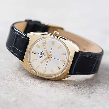 Henry London Vintage Square Round White Silver Dial 3 ATM Water Resistant Watch