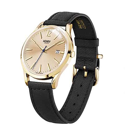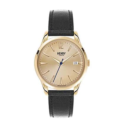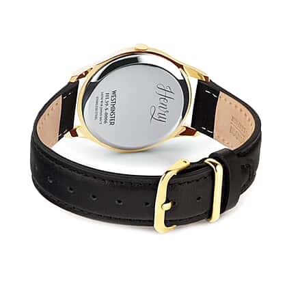 Henry London Westminster Water Resistant Watch with Genuine Leather Strap - Black