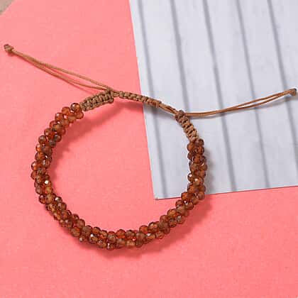 30.66 Ct. Hessonite Garnet Adjustable Beaded Bracelet 6.5 to 9.5 Inch