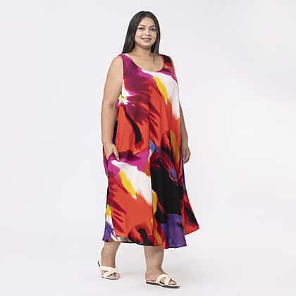 Add this Tamsy printed dress to your holiday wardrobe collection. It features a round neckline sleeveless design and has added two side pockets for an extra hint of style. You can pair it for your beach party or brunch dates.