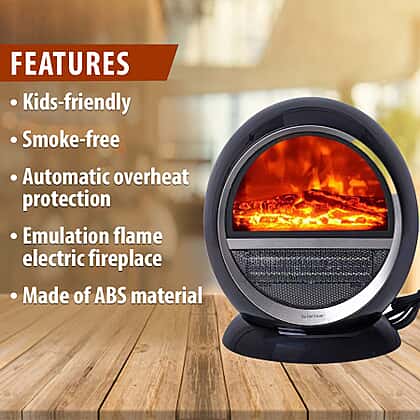 1.5KW Portable PTC Fireplace Design Electric Heater with 3 Pin Plug Size 25x36 Cm in Black Colour