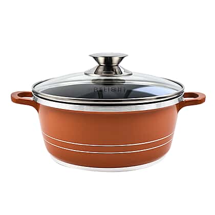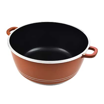 Embark on a culinary adventure with this 10-piece pan and lid set, elegantly finished in copper. Each piece, ranging from 20 cm to 32cm, is crafted with a ceramic non-stick surface, ensuring that even the most delicate dishes slide off the pan effortlessly, without the added oils. The die-cast construction promises even heat distribution, minimising hot spots and making each meal a masterpiece of flavour. Whether you're simmering, sautéing, or searing, this set turns your kitchen into a stage for gastronomic creativity.
