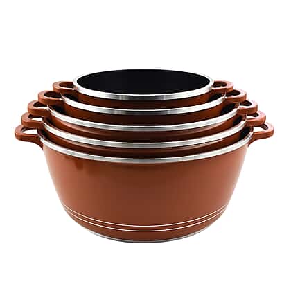 Set of 10 - Pan and Lid Set, Ceramic non-stick, Die-cast (32cm, 30cm, 28cm, 24cm, 20cm) - Copper
