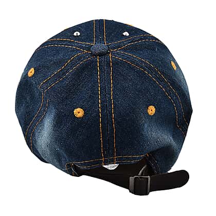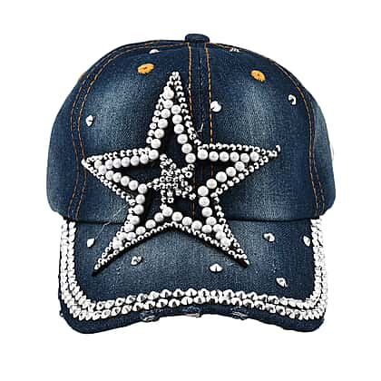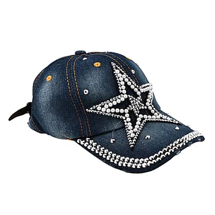 100% Cotton Crystal Studded Big Star Design Denim Cap - Blue