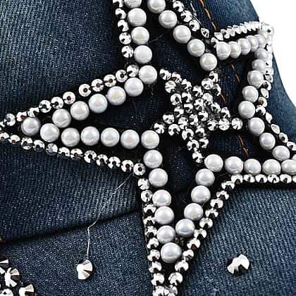 100% Cotton Crystal Studded Big Star Design Denim Cap