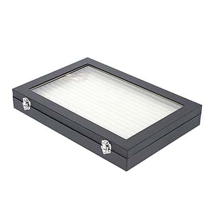 150 Slot Ring Box with Acrylic Window and Anti Tarnish Lining Trinket Jewellery Organiser (Size 35x24x5 Cm) - Black