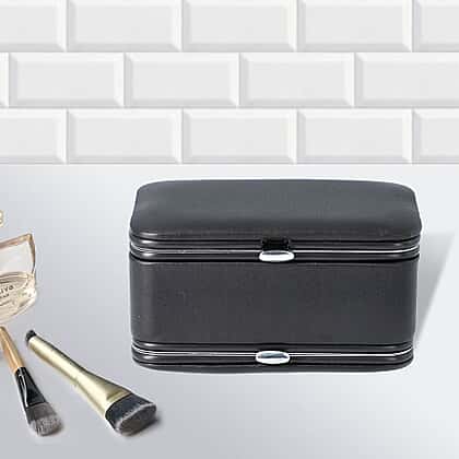2 in 1 - Six Piece Manicure Set and Travel Jewellery Organiser with Inside Mirror (Size 11.7x7.5x6.5cm) - Black