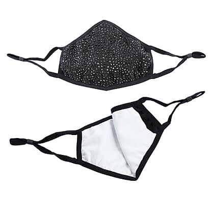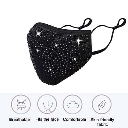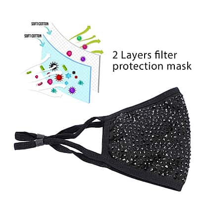 2 Layer Face Cover Decorated With Glass Rhinestones in Black Colour