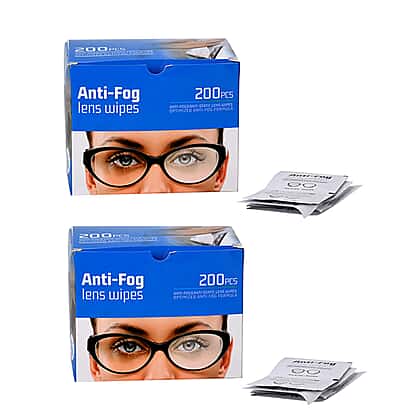 2 Packs of 200 (400 Total) Anti-fog Lens Wipes - Cold to Hot Anti Fog - Pre-moistened For Glasses, Sunglasses, Swimming goggles, Helmets, Mirrors, etc
