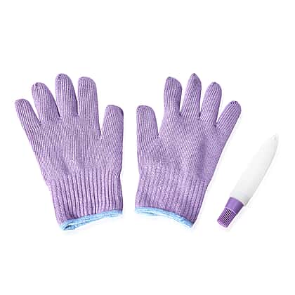 2 Piece Set - Pair of Tuff Gloves (Size 28x15x3.8 Cm) and Silicone Basting Brush (Size 18.5x4 Cm) - Light Purple and White