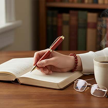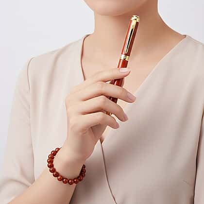 2 Piece Set - Red Jade & White Glass Stone Bracelet (Size 7.5) & Red Pen in Yellow Gold Plated 301.00 Ct.
