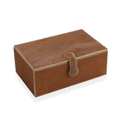 2 Tier Leather Hide Jewellery Box with Magnetic Flap Closure and Velvet Lining Size 24x14x9 Cm in Camel Brown