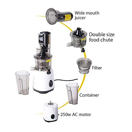 • Supplement your daily dose of nutrition with this practical, convenient wide mouth juicer