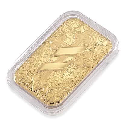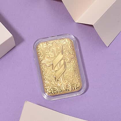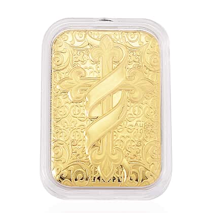 Just a gold collectible that will remind you of your faith! This 24K yellow gold collectible features a fleur-de-lis cross at the centre wrapped around with a ribbon-like detailing. The collectible is further enhanced with ornate swirling designs that helps to add a timeless luxe look to it. It features curved edges which helps to add a sense of gracefulness to the design. It makes for a unique keepsake that can be passed on to generations or a piece of investment. It can also symbolise hope and belief in the higher power, thus can also make for an enduring emblem of your faith.