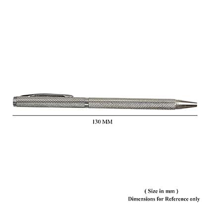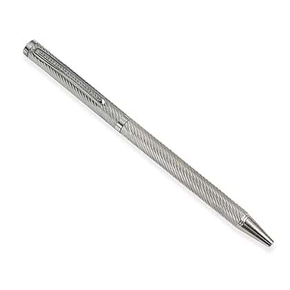 25 Single Cut Diamond Studded (0.12 ct.) Sterling Silver (10.0 Gms) Swirl Pattern Ball Pen with 1 Extra Refill in Black Colour Box