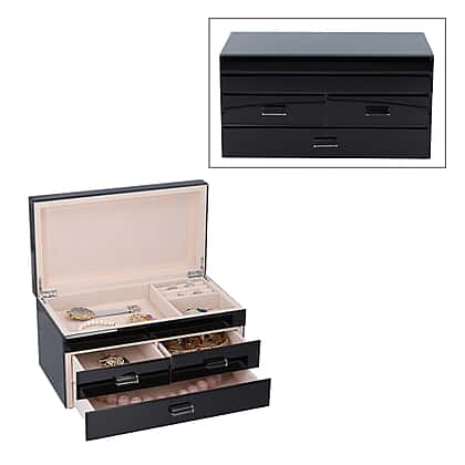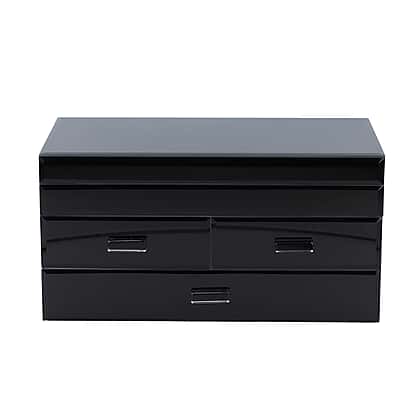 3 Layer Glass Mirrored Jewellery Box with three Drawer and Velvet Inner Lining (Size 31x17x16cm) - Black