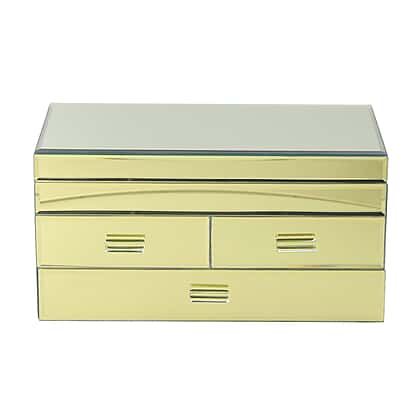 3 Layer Glass Mirrored Jewellery Box with Three Drawer and Velvet Inner Lining (Size 31x17x16cm) - Gold