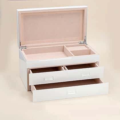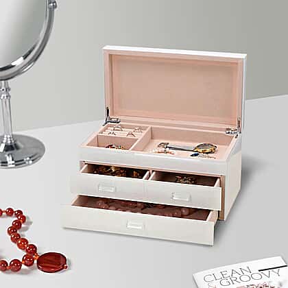 3 Layer Glass Mirrored Jewellery Box with three Drawer and Velvet Inner Lining Organiser Box for Necklace, Earrings, Bracelets, Watches and Accessories for Women's and Girl's- White