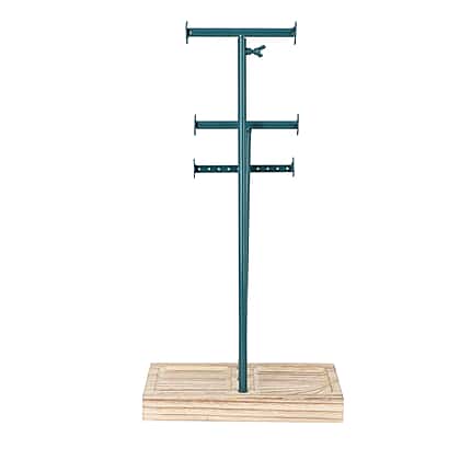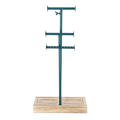 3 Tier Jewellery Stand in Teal Colour with Wooden Base