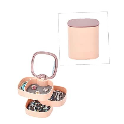 360 Degree Rotatable Four Layer Jewellery Organiser with Mirror (Size 11x12cm) - Dusty Pink and Plum