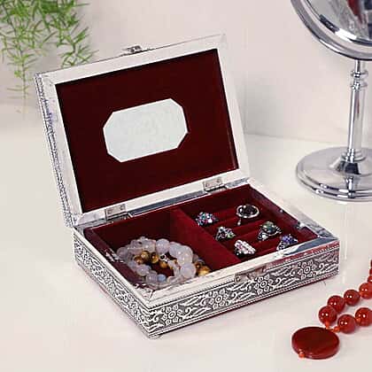 - LINED WITH VELVET: The interior is velvet lined with a mirror on top section, too