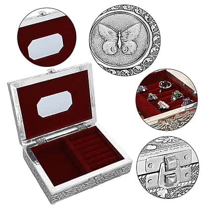 3D Embossed Collection Handcrafted Butterfly Oxidised Jewellery Box (Size 19x14 Cm) with Mirror and Velvet Interior
