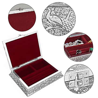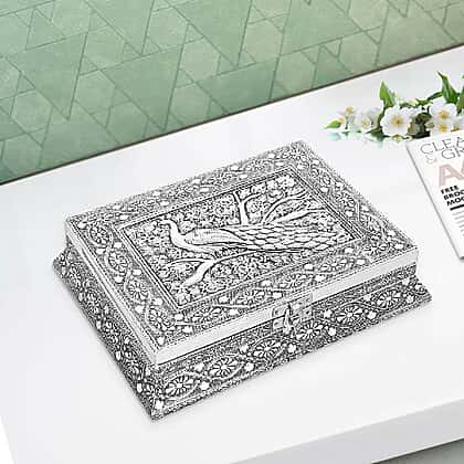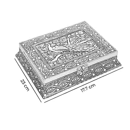 3D Embossed Collection Handcrafted Peacock Oxidised Jewellery Box (Size 23x17.7 Cm) with Red Velvet Interior