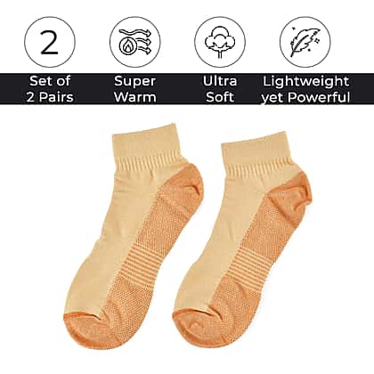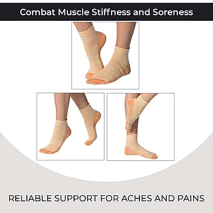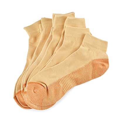 Step into comfort and relief with these 4 pairs of antibacterial copper-infused compression socks. Designed to support circulation and reduce fatigue, they’re perfect for daily wear or after long hours on your feet. Crafted from a blend of 65% cotton, 30% copper, and 5% spandex, they offer softness, stretch, and breathability in equal measure. The copper fibres help fight odour and bacteria, keeping your feet fresh and dry all day. Lightweight yet supportive, these orange compression socks fit comfortably and provide warmth without bulk, making them a reliable everyday essential.