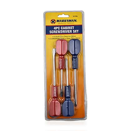 The Marksman slot and crosspoint screwdrivers are professional tools for various screwing tasks. These screwdrivers have high-impact handles with durable blades that provide excellent torque and robust durability while you work with them. The unique handle design gives you a comfortable grip. This set is an essential part of the toolkits, the long, robust blades are ideal for driving flat and Philips screws.