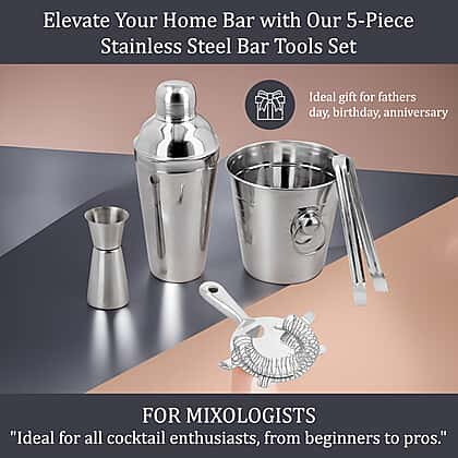 Elevate your mixology craft with the sleek 5-piece Stainless Steel Bar Tools Set. Perfect for the cocktail connoisseur, this kit includes essential instruments to shake, stir, and serve with professional flair. Each piece's stainless steel construction promises durability and effortless cleaning. Whether hosting a gathering or honing your bartending skills, this set is necessary for creating delectable drinks with precision and panache.