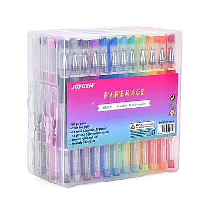 60 Pack Gel Pens Set with Storage Box for Colouring Books Drawing, Penting - Writing - Multi