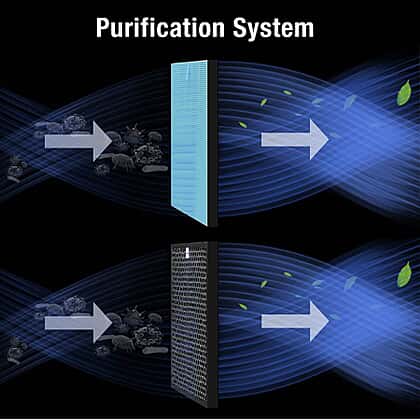 - Clever technology forces air through mesh filters to remove particles from the air in room
