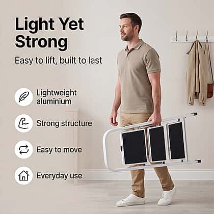 This Aluminium 3-step Ladder is perfect for handling everyday tasks around the house. Lightweight and sturdy, it features a sleek white finish that blends into any space. The wide steps are covered with an anti-slip mat, giving you extra stability and peace of mind while reaching higher places. The compact design allows easy folding and storage, making it super convenient for tight spaces. Whether changing a lightbulb or reaching the top shelf, this ladder has you covered with safety and style.