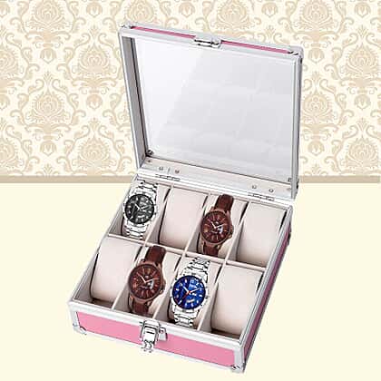 8 Slot Watch Box in AluminiumSize 21.5x20x8 Cm Pink