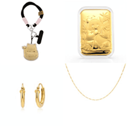Anshus Treasure Chest Mega Offer- (24K Key Chain, 24K Embossed Keepsake,9K Gold Necklace and 9k Hoop Earrings)